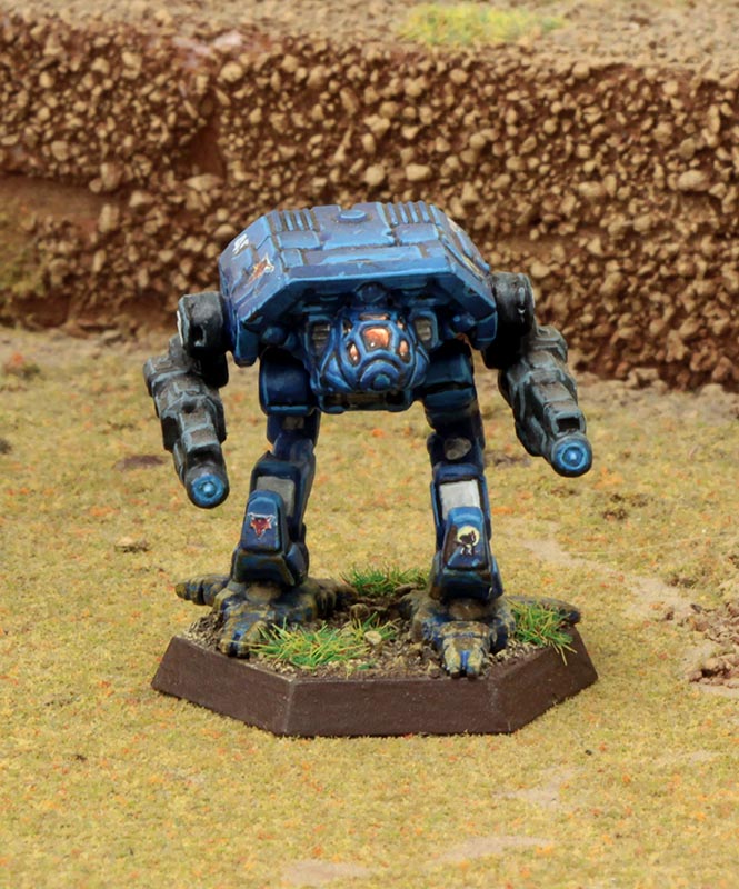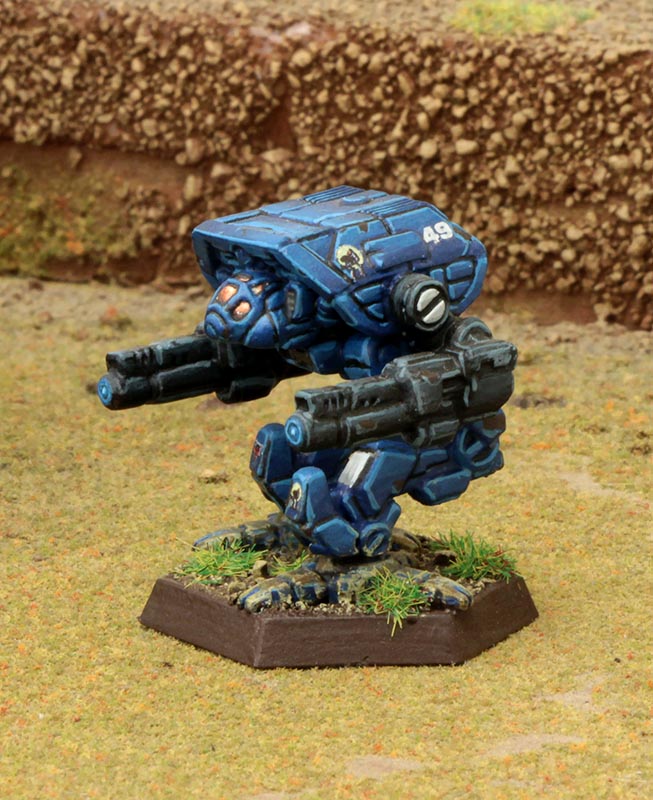 uses the Coyote’s traditional colors of blues, blacks and greys, painting the bodies of their ‘Mechs and battle armor blue, while the arms are painted black. Light grey highlights all over the unit.
