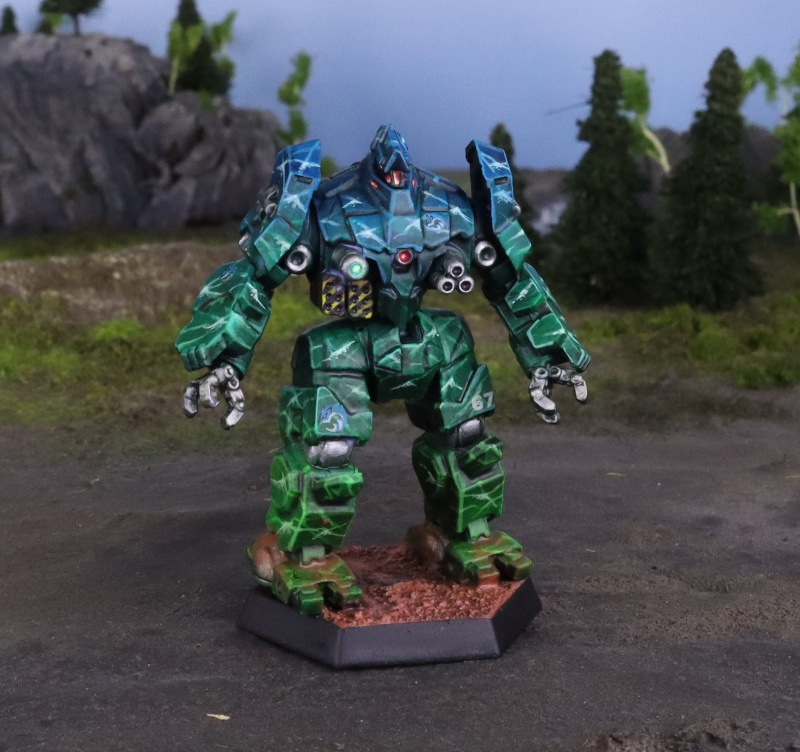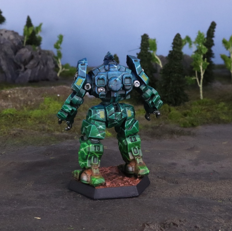 Spina Khanate uses a light blue with steel highlights. Some units opt to instead paint a turquoise green that starts at the feet of 'Mechs and Battle Armor and the rear of aerospace fighters and tanks then fades into blue around the middle of the unit with water details throughout.