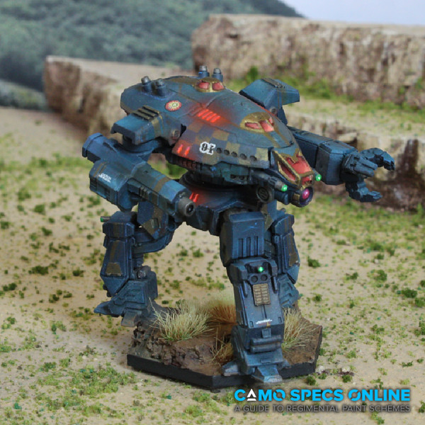 The Lancers parade color scheme is navy blue with gold banding on the arms and legs. Gold is also used on the upper torso of the 'Mechs and the turrets of armor units to highlight panels, resulting in a checkerboard pattern. Shades and patterns may vary from unit to unit. Per FM:3145, page 73Other references: None