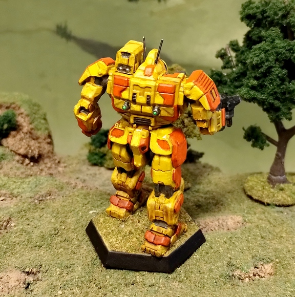 The Destroyers’ do no not have a uniform paint scheme, its warriors opting instead for personal designs when eschewing appropriate camouflage. However, several sub-commands adopt uniform paint schemes on occasions: the Sword of Gideon is gray with green and purple trim; the TekCom Raiders use predominantly white; the PolyTech Weasels favor neon and disruptive camouflage, and the Black Death invariably paint their machines flat black. In the ilClan era, many MechWarriors have taken to using a yellow and red-orange paint scheme in honor of the founding colonel and his BattleMech.