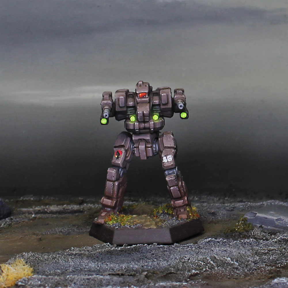 Only the unit’s logo – the fog-enshrouded silhouette of a man wielding a large gun set against a full moon – identifies a Vigilantes ‘Mech. Per FM: Mercenaries Supplemental II, page 63.
