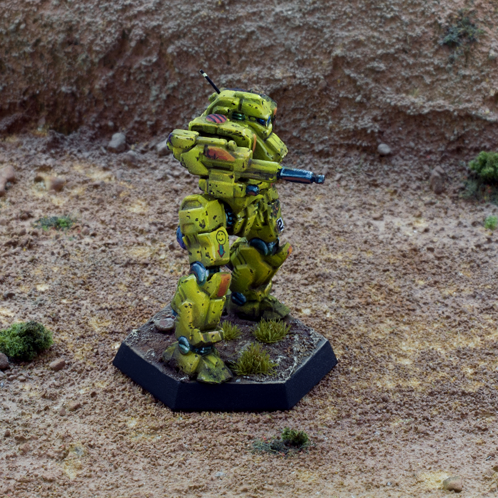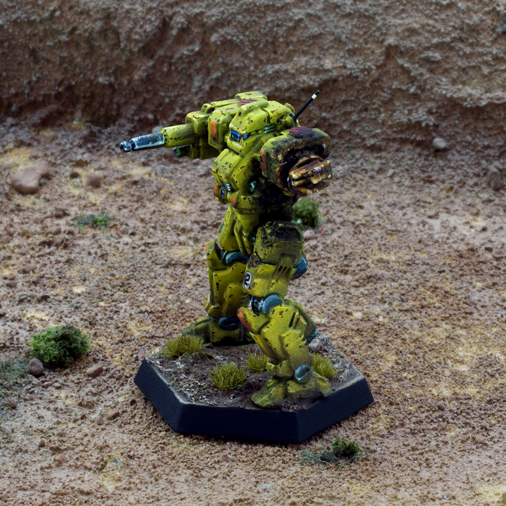 The Destroyers’ do no not have a uniform paint scheme, its warriors opting instead for personal designs when eschewing appropriate camouflage. However, several sub-commands adopt uniform paint schemes on occasions: the Sword of Gideon is gray with green and purple trim; the TekCom Raiders use predominantly white; the PolyTech Weasels favor neon and disruptive camouflage, and the Black Death invariably paint their machines flat black. In the ilClan era, many MechWarriors have taken to using a yellow and red-orange paint scheme in honor of the founding colonel and his BattleMech.