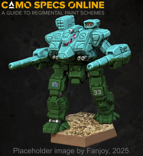 Taiga Galaxy employs a tree line camo scheme. Warriors are permitted to paint this scheme to match various seasons and times of day. In arctic environments alpine camo is used instead. Since their rebellion, the 2nd Freemen Cluster paint the upper arms silver and red Nordic runes highlight their machines.