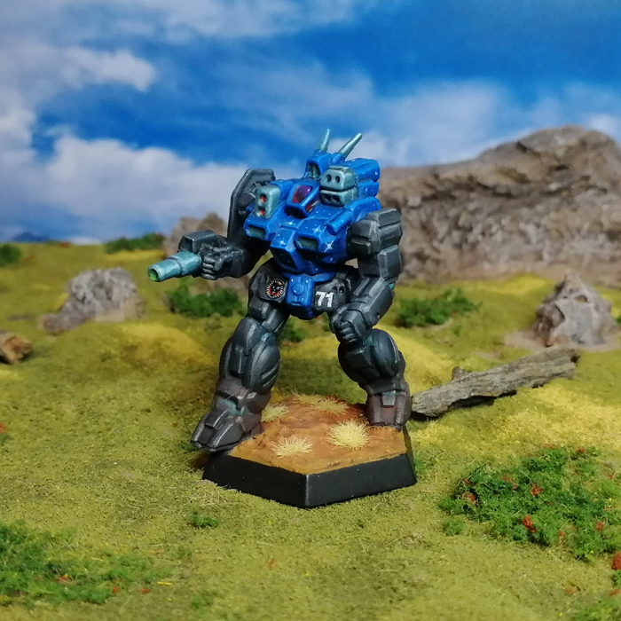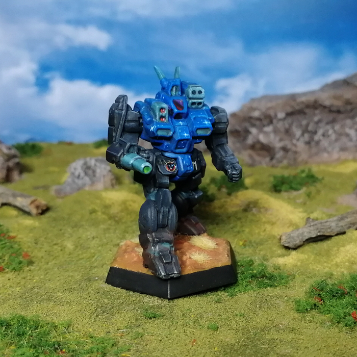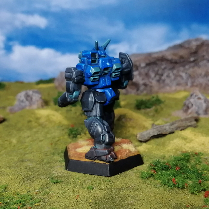 Though Clan Nova Cat tends toward appropriate camo in the field, Alpha Galaxy sometimes uses a scheme of black with a stream of blue stars, painted along the center chest of 'Mechs and Battle Armor and along the fuselage of aerospace fighters. Canonized by CSO on 8/9/2009.Other References: Blood Legacy (Roc Printing) pg 326. Mist Lynx, CM: Kurita (p 109) Executioner, Battle of Tukayyid (p 101) Warhawk, Nova Cat, Nova, Shadow Cat, Battle of Tukayyid (p 112) Executioner, Battle of Tukayyid (p 180)
