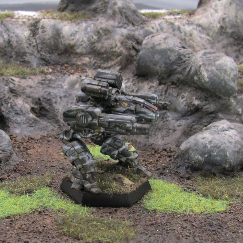 Beta paints its 'Mechs in a multilayered grey camouflage consisting of horizontal streaks, meant to represent a mist. Bloodnamed warriors paint large felid eyes on the torso of their 'Mechs, and may even add other felid features as well. Kills are marked by smaller pairs of eyes placed randomly on the 'Mech, though some warriors have taken to placing them near the weapons which delivered the final blow. The Elementals of Beta Galaxy have been seen in both this scheme and the traditional jaguar spot camo. Canonized by Chewie on 11/6/2004.Other references: Arctic Cheetah, Battle of Tukayyid (p 43) Shadow Cat, Battle of Tukayyid (p 180)