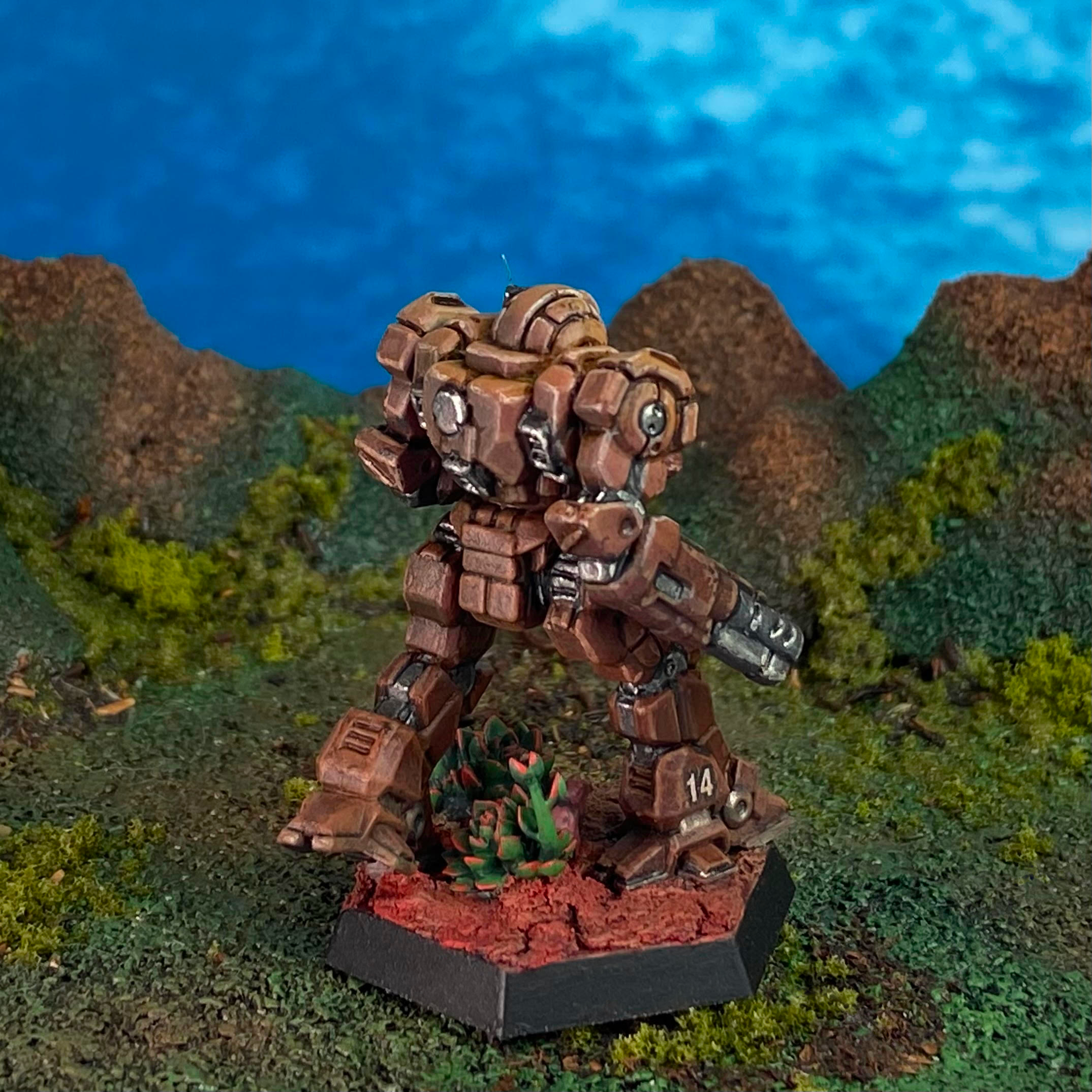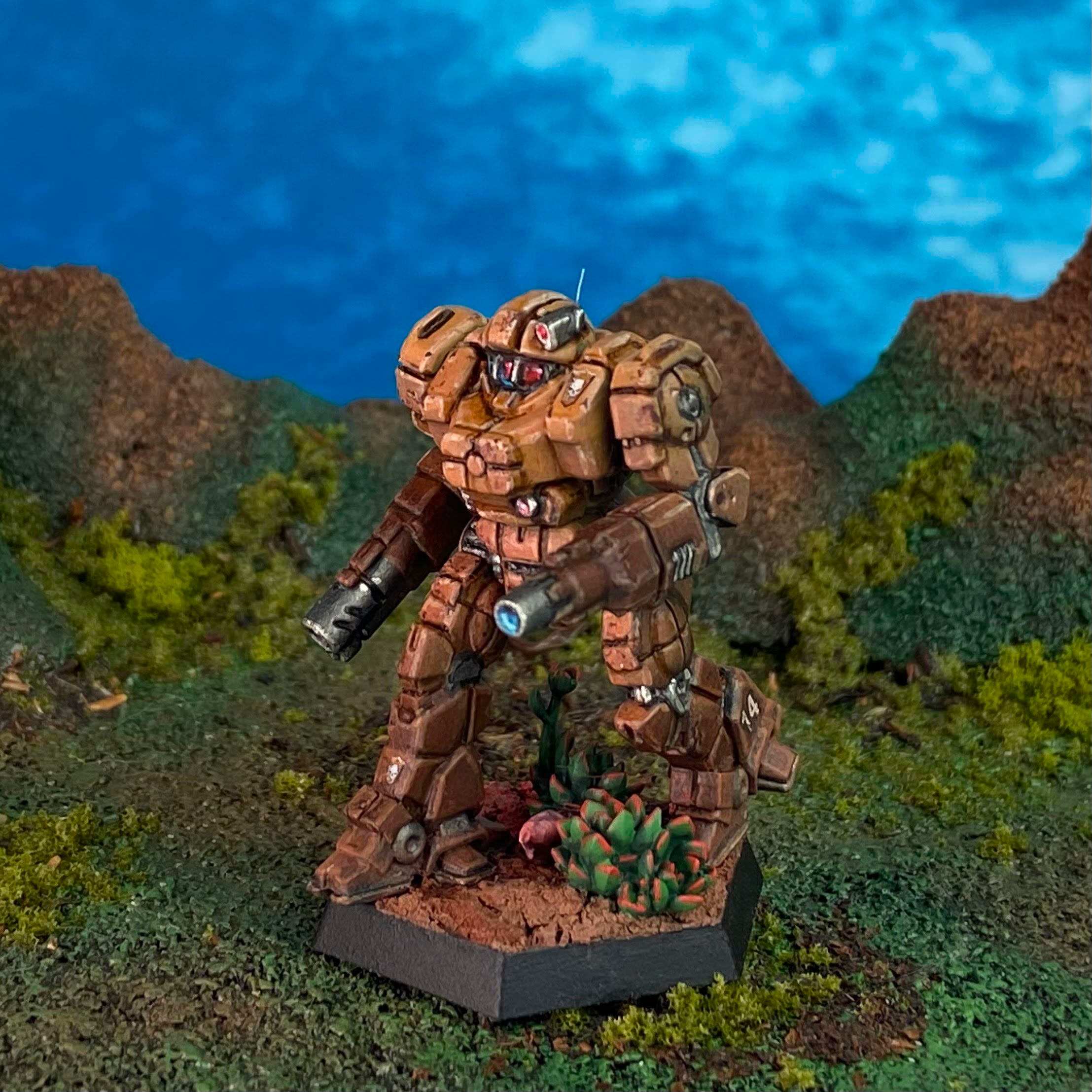 The roughriders prefer a dusty brown and dun color scheme, but adapt appropriate camouflage when necessary. -Per FM: Mercenaries, pg 59.Though using appropriate camouflage in combat, for parades the Roughriders use a midnight blue with smoke highlights color scheme. -Per Mercenaries Supplemental, page 37.Editor's note: the blue scheme and logo are the only ones appropriate in the ilClan era.Other references: Pillager, FM: Mercenaries (plate 13) Cestus, Mercenaries Supplemental (color plates) Atlas, CM: Mercenaries (p 109)