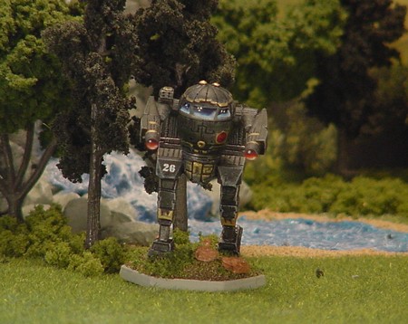 This mini was painted with Ceramcoat Charcoal Gray and washed with Citadel Black Ink, with Ceramcoat Hippo Grey highlights. The gold trim is Ceramcoat Aztec Gold.