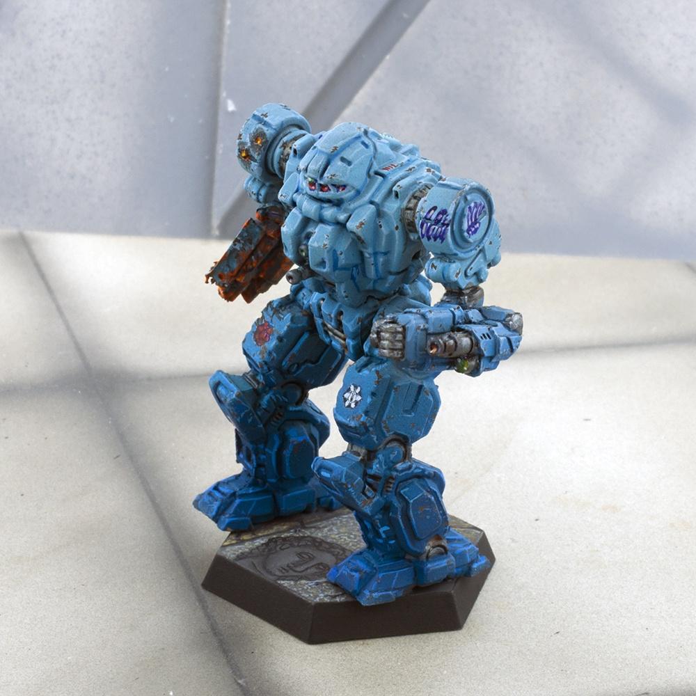 paints their `Mechs midnight blue at bottom (aftward for aerospace fighters and vehicles), fading to a light, cloudy or misty grey at the top (forward for aerospace fighters and vehicles). Kills are marked with bright blue claw marks on the unit`s upper surface or weapons.Canonized by Ogre on 6/1/2007Other references: none