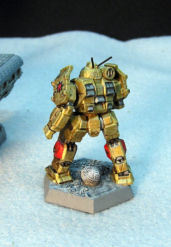 Most Redjack Ryan 'Mechs are painted in a patchwork of primers, or whatever personal scheme the 'Mechwarrior can arrange. However, Ryan himself and those in his personal favor have their 'Mechs painted in gold with red trim. -Canonized by Fanjoy, 1/11/21Other references: none