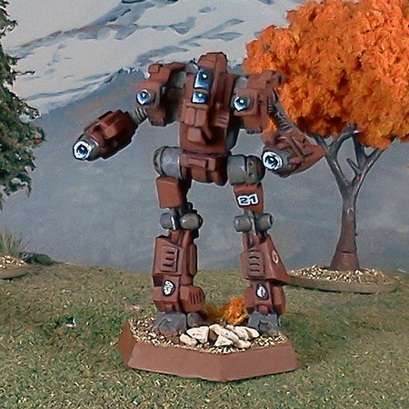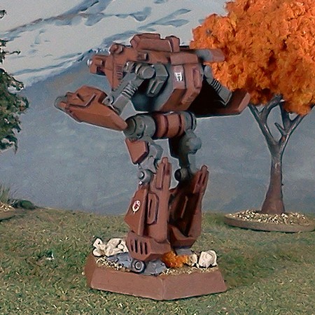 The Dire Wolves Alpha uses a brown or reddish-brown paint scheme, with dark accents. Per FM:Warden Clans, page 158 Other references: Timber Wolf, Classic Battletech Master Rules Revised Edition (plate 8)