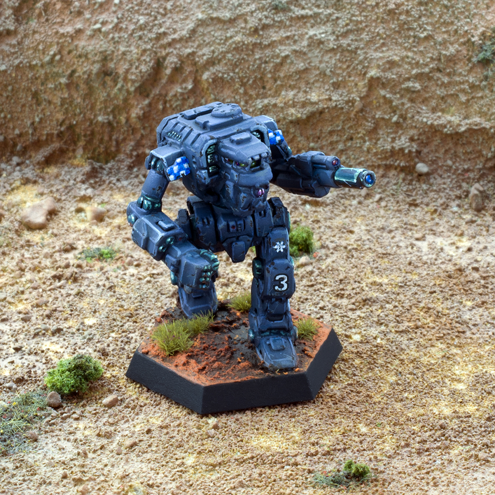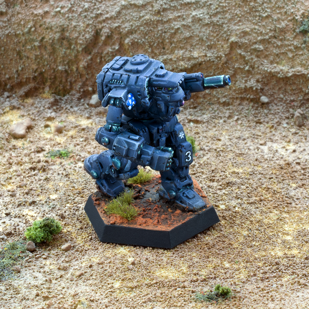 When not utilizing operational camouflage, Sigma Galaxy's subtle parade scheme is navy blue with grayish-blue edging. Mechwarriors, Elementals and armor crews also highlight their units with blue and white checkerboard trim.Canonized by MadDoc on 1/31/10.Other references: none