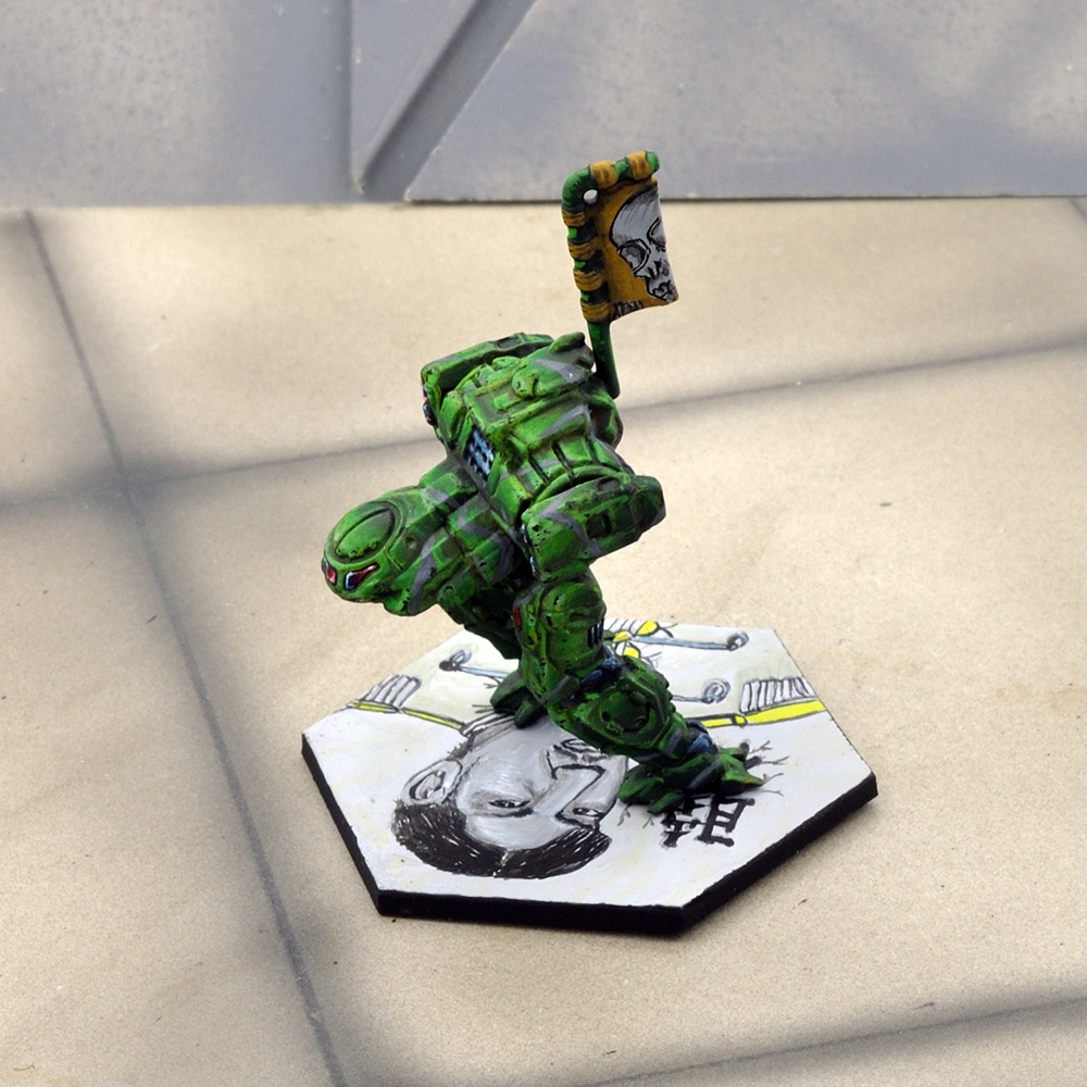 The Amphigean Light Assault groups rely on camouflage schemes that change from planet to planet. When forced to participate in public parades, they adopt their "junkyard camo", painting their vehicles a combination of flat gray highlighted with rust-brown splotches and black scorch marks. Per FM:Draconis Combine, page 94.Other references: Ontos, CB: Miniatures Rules (p 18)