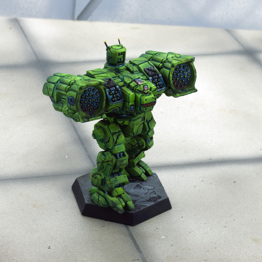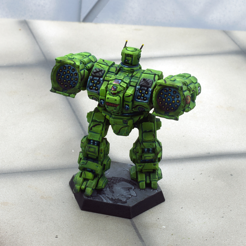 The insignia of Chisholm’s Raiders is a blue disc on which is a black triangle representing a native American shield. Radiating out from the shield are six white arrows, each pointing in a different direction. Recently a fan of feathers was added to the base of the shield All Raiders’ mechs and vehicles bear the Chisholm’s Raiders insignia. The quality of the painting, done by the pilots, varies considerably, lending to the slapdash image of the unit. Per FM:Federated Suns, pages 59 and 60.