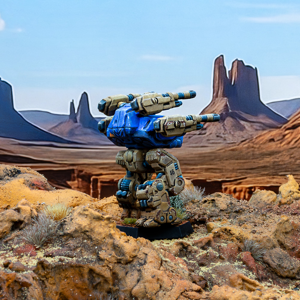 1st Galatean Defense ForceThe 1st Galatean Defense Force paints their machines in a deck tan color.  Torsos and shoulders are painted ultramarine blue, accented with a vertical orange stripe.Canonized by GunjiNoKanrei 3/31/14 Other references: none