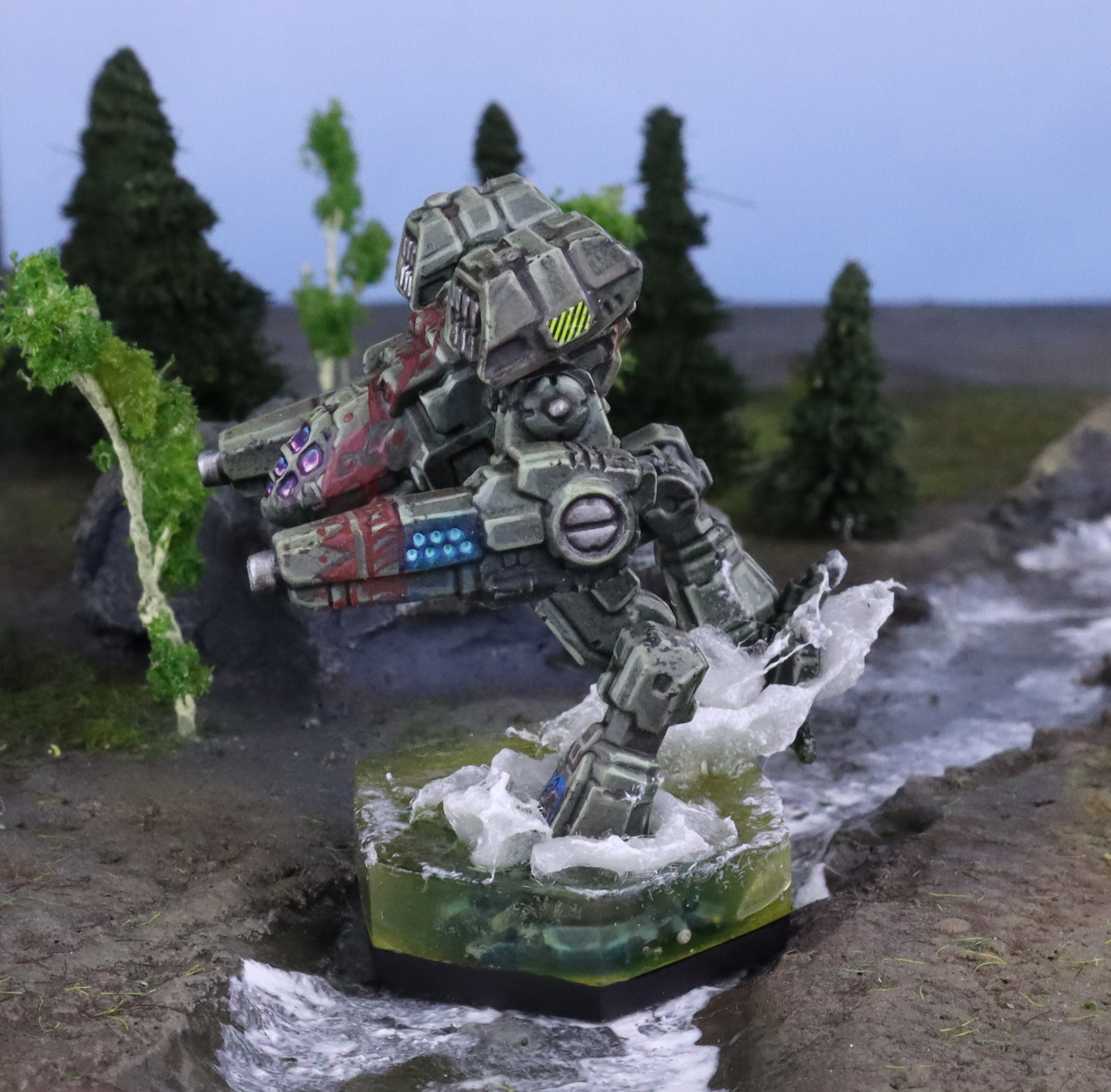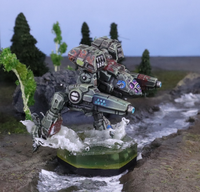 Fox KhanateThe machines of Fox Khanate are painted grey-green. Accents are reddish-brown in color, and are applied in patterns resembling the tattoos used by Polynesian cultures on ancient Terra.Cannonized by CSO on 2/19/2014Other references: none