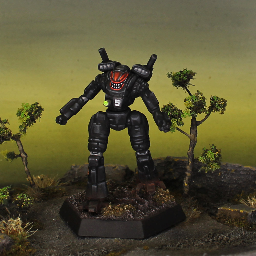 The Black Sharks paint their BattleMechs flat black, with extravagant nose-art of shark heads and teeth on the head, as with ancient atmospheric fighter planes. - per Turning Points: Tyrfing, pg. 10