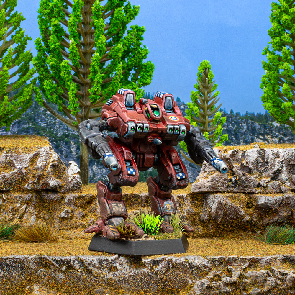 The Rangers’ insignia takes the form of a disc, upon which is a yellow sun in a blue sky, partly obscured by wisps of white cloud. Officially, the reborn Twenty-second does not have a unit patch, but warriors from the regiment have taken to wearing the image of a jade falcon, gripped around the neck by a Commando BattleMech. Per FM:Lyran Alliance, pages 99 and 102.
