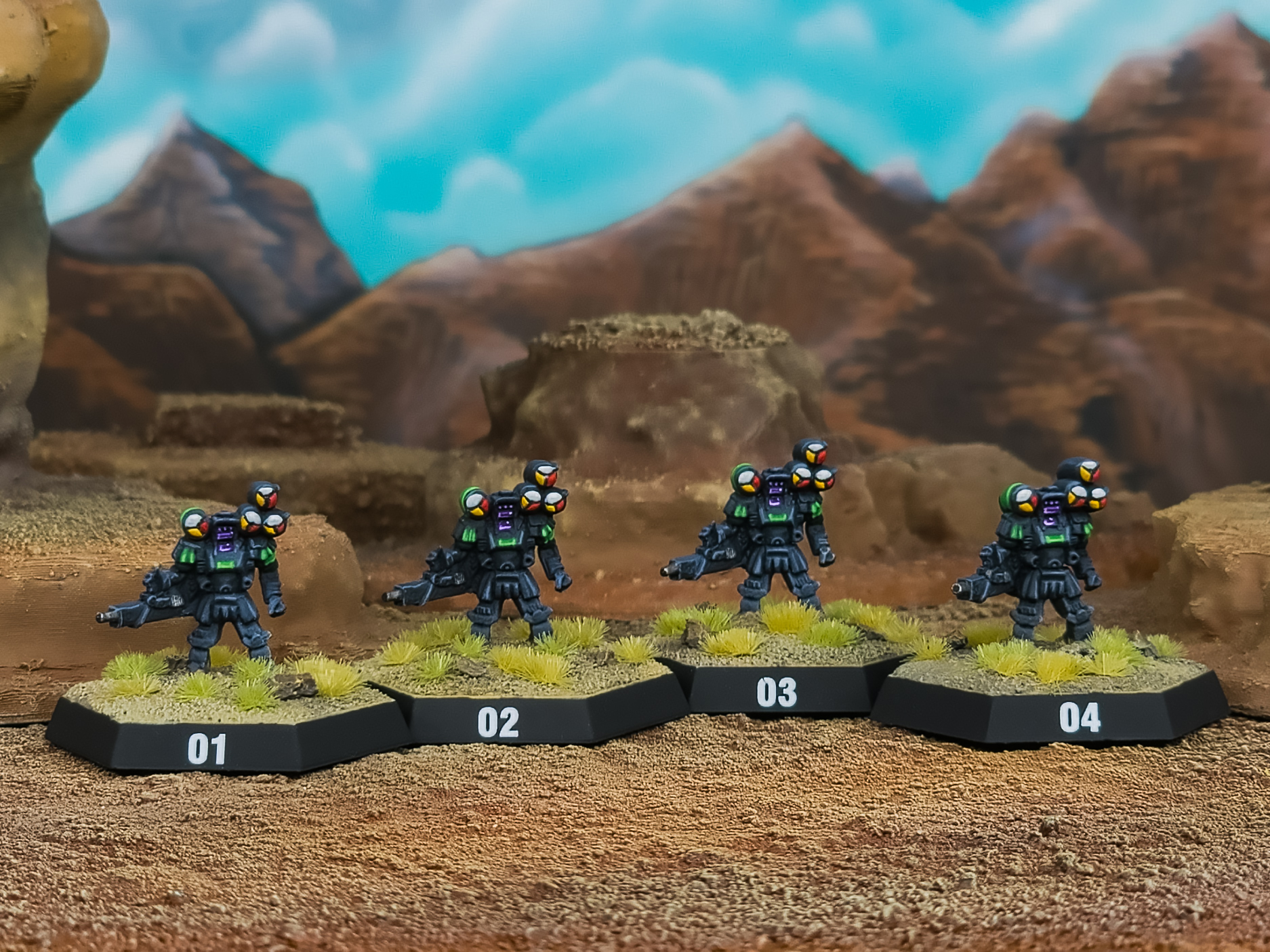 They do not display the Confederation crest. The unit’s insignia is a death’s-head, enameled in bone-white and set over a green triangular device barely wide enough to be seen behind the skull.