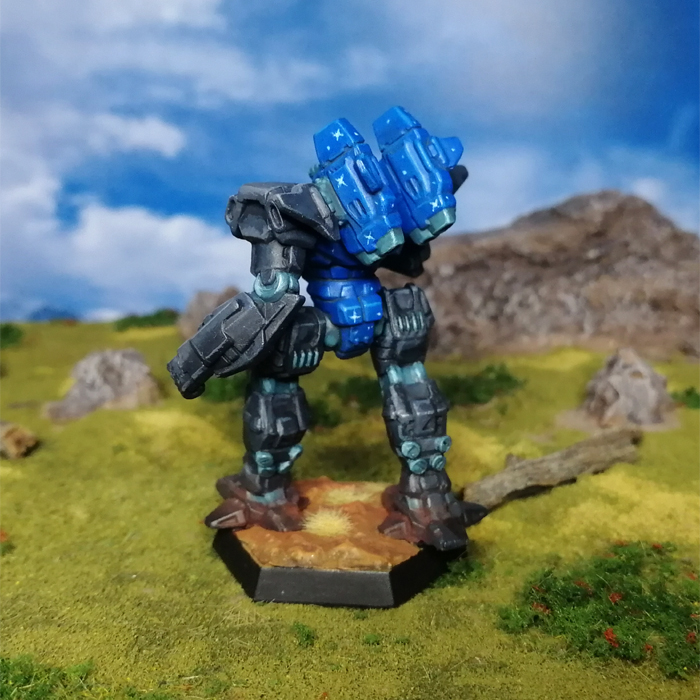Though Clan Nova Cat tends toward appropriate camo in the field, Alpha Galaxy sometimes uses a scheme of black with a stream of blue stars, painted along the center chest of 'Mechs and Battle Armor and along the fuselage of aerospace fighters. Canonized by CSO on 8/9/2009.Other References: Blood Legacy (Roc Printing) pg 326. Mist Lynx, CM: Kurita (p 109) Executioner, Battle of Tukayyid (p 101) Warhawk, Nova Cat, Nova, Shadow Cat, Battle of Tukayyid (p 112) Executioner, Battle of Tukayyid (p 180)