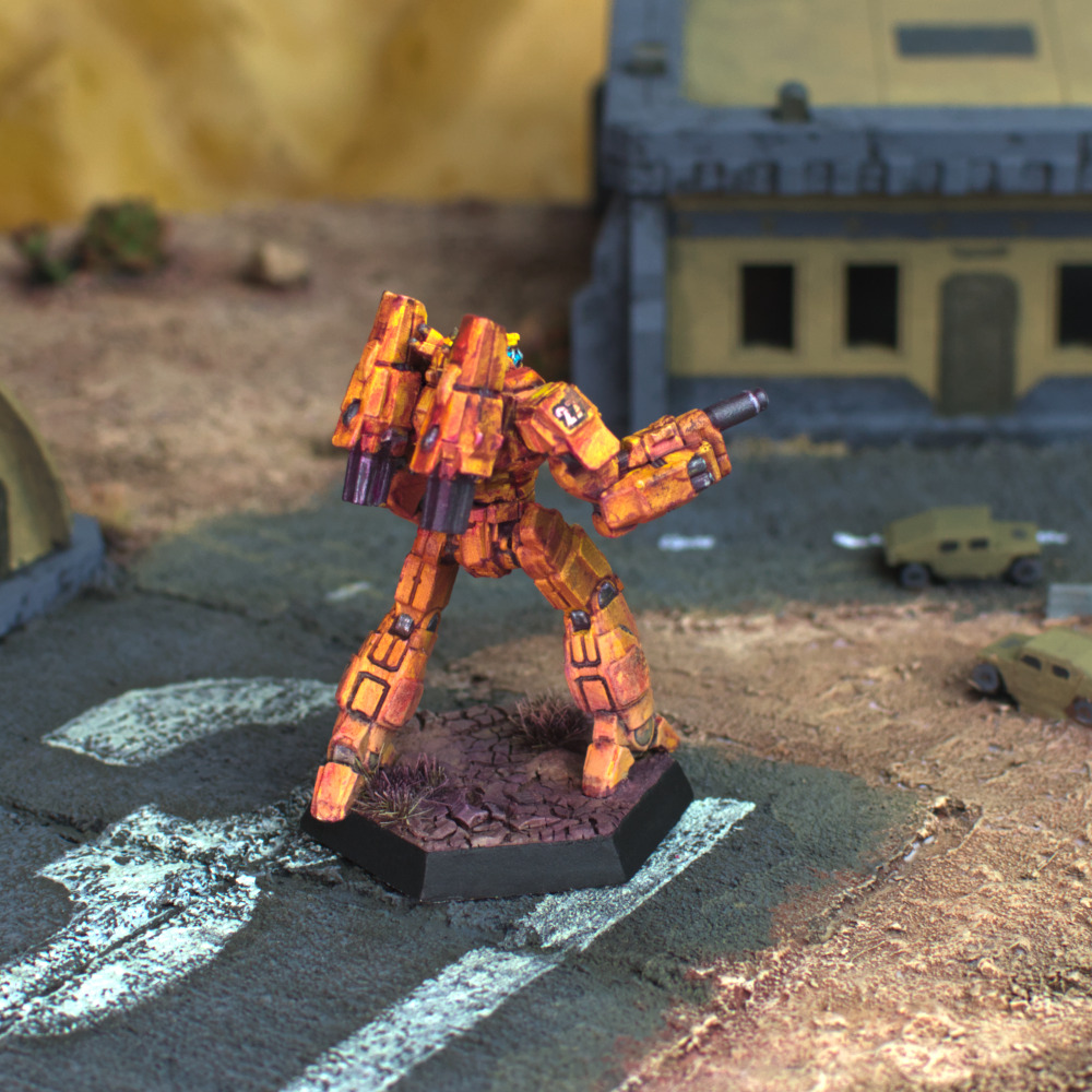 The Destroyers’ do no not have a uniform paint scheme, its warriors opting instead for personal designs when eschewing appropriate camouflage. However, several sub-commands adopt uniform paint schemes on occasions: the Sword of Gideon is gray with green and purple trim; the TekCom Raiders use predominantly white; the PolyTech Weasels favor neon and disruptive camouflage, and the Black Death invariably paint their machines flat black. In the ilClan era, many MechWarriors have taken to using a yellow and red-orange paint scheme in honor of the founding colonel and his BattleMech.