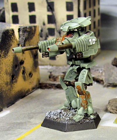 Fox KhanateThe machines of Fox Khanate are painted grey-green. Accents are reddish-brown in color, and are applied in patterns resembling the tattoos used by Polynesian cultures on ancient Terra.Cannonized by CSO on 2/19/2014Other references: none