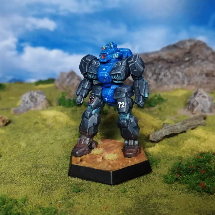 Though Clan Nova Cat tends toward appropriate camo in the field, Alpha Galaxy sometimes uses a scheme of black with a stream of blue stars, painted along the center chest of 'Mechs and Battle Armor and along the fuselage of aerospace fighters. Canonized by CSO on 8/9/2009.Other References: Blood Legacy (Roc Printing) pg 326. Mist Lynx, CM: Kurita (p 109) Executioner, Battle of Tukayyid (p 101) Warhawk, Nova Cat, Nova, Shadow Cat, Battle of Tukayyid (p 112) Executioner, Battle of Tukayyid (p 180)