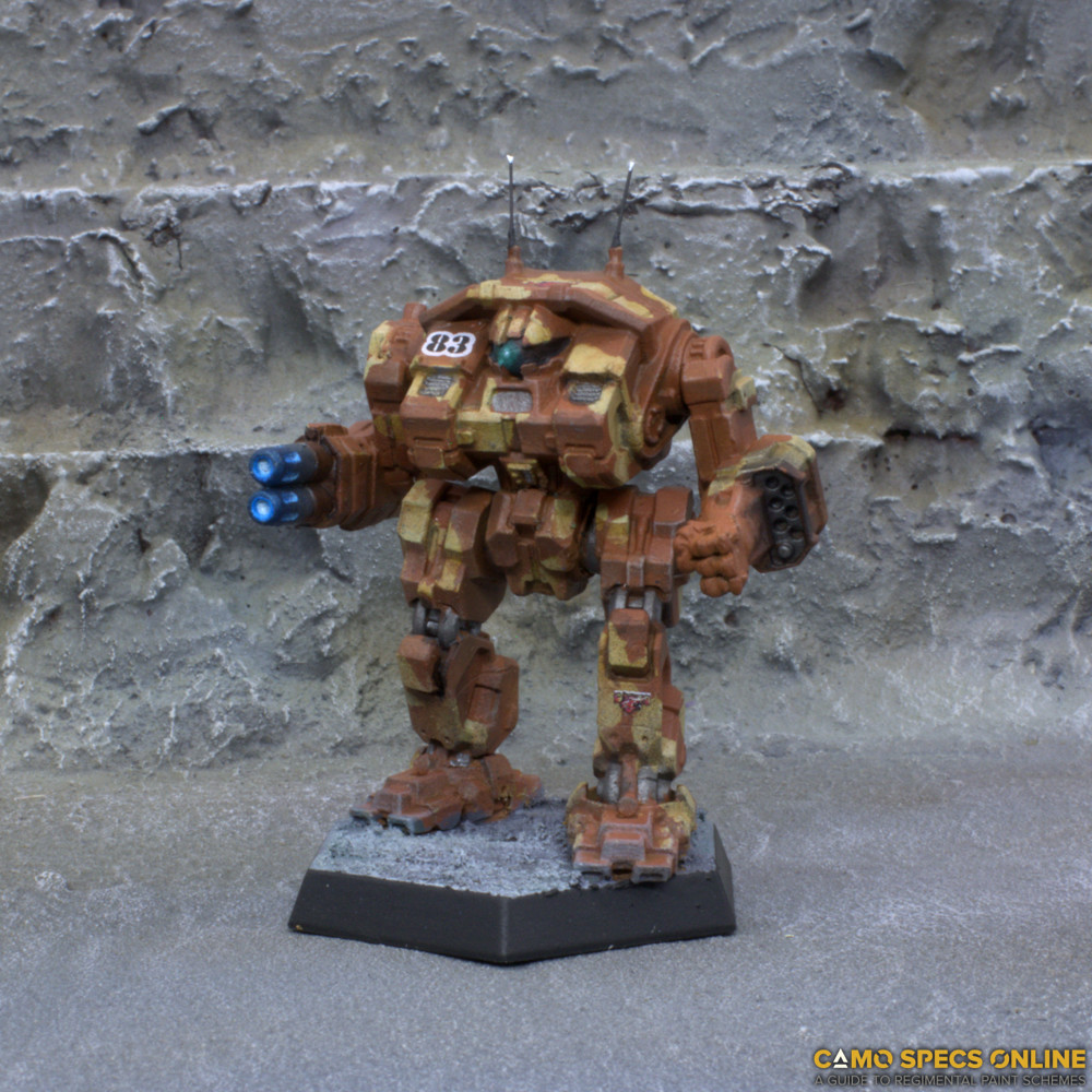 The Zeta Wolves use a two-tone camouflage pattern of equal parts brownish-red and tan. They usually paint their 'Mechs, vehicles, and battle armor in a piebald pattern. - canonized by Nomad 11/4/20