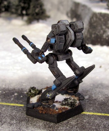 Delta uses shades of light and dark grays painted in a faded pattern. They accent their 'Mechs and Battle Armor with light blue highlights.Canonized by JJPens on 7/10/2004. Other references: Vulture, Gnome BA, Combat Equipment Guide (color plate 4) Kit Fox, Battle of Tukayyid (p 71) Timberwolf, Battle of Tukayyid (p 179)