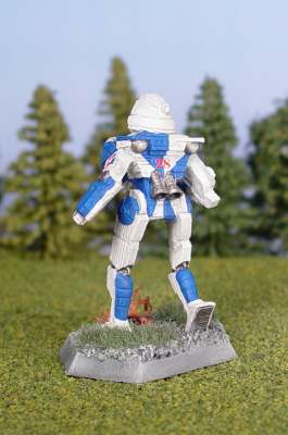 Each ‘Mech displays the Marik Militia crest – a stylized Marik Eagle on a red and blue background – on its left arm or weapons pod. The ‘Mechs of the Fourth display their insignia, a mech stepping on a tank, prominently on the chest. Per FM: Free Worlds League, pages 53 and 56.